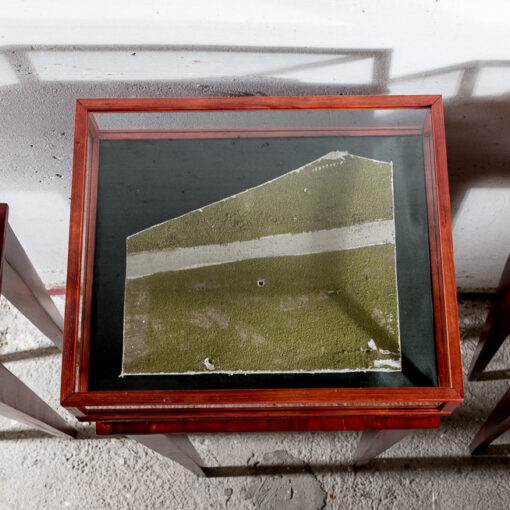 Ich untersuche die Orte, die das Modell meiner Wahrnehmung nach verbindet: Das verlassene, von der Öffentlichkeit ausgeschlossene Zwischengeschoss, das Spuren des Abbaus der Anlage trägt und neben übrig gebliebenen Fragmenten der Arbeit auch den Arbeitsplatz und persönliche Gegenstände von Frey z.B. in seiner Werkstatt unter den Rolltreppen beinhaltet. Die Stadt Stuttgart, voll mit Häusern, Menschen und Lärm, sowie die ausgestellte Anlage in Herrenberg.