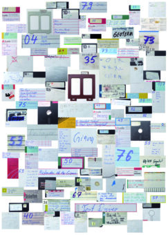 Anwender* ist der Titel für die Arbeit der Künstlerin Barbara Karsch-Chaïeb. Das Wort hat sich auf einem Aufkleber auf einer Floppy-Disc aus dem Nachlass von Wolfgang Frey gefunden. Das Werk besteht aus mehreren Teilen. Für die Floppies** wurde eigens ein Holzkasten gebaut, um sie (für eine weitere Ewigkeit?) aufzubewahren. Ähnlich einem Karteikasten in Archiven. Dieser Kasten ist einsehbar und kann sowohl aufgestellt wie an die Wand gehängt werden. Die Disketten sind aus einer anderen Zeit, sie beherbergen Informationen und Spiele, die nur zum Teil noch gelesen werden können, niemand weiß, ob die Beschriftungen mit dem Inhalt der Disketten übereinstimmen. Sie sind teilweise in schöner Handschrift oder grob aufgekritzelt. Genau diese handschriftlichen Notate haben die Künstlerin angesprochen, erinnern sie doch an kleine Zeichnungen, Spuren und Abdrücke, die absichtlich, oder auch zufällig (aus Unachtsamkeit) entstanden sind. Diese Spuren sind letztendlich wirkliche Hinterlassenschaften von Wolfgang Frey (auf Speichermedien, die heute nicht mehr verwendet werden können). Sie zeigen ebenfalls, welche Rolle die Zeit in seiner Arbeit gespielt hat. Viel zu kurz war sie, um die Informationen auf den Disketten oder nur einen Bruchteil davon zu nutzen. Nie ausreichend, um sein Lebenswerk, ein Modell, fertig zu stellen, denn die ständige Umwandlung des Stadtraumes ließ und lässt dies gar nicht zu.