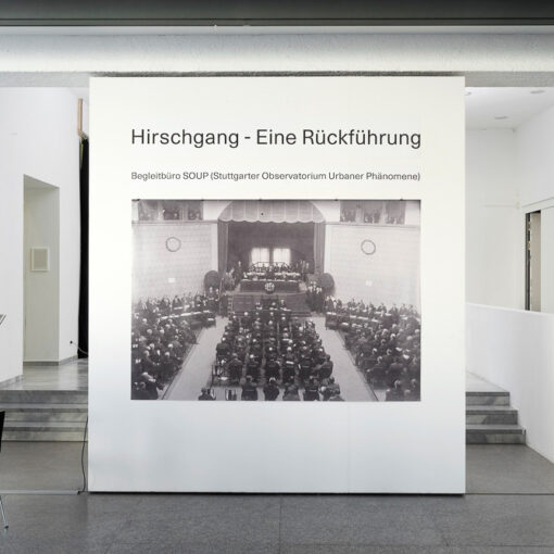 Im März 2011, als die öffentlichen Auseinandersetzungen um das Großprojekt Stuttgart 21 noch in vollem Gange waren, installierte das Begleitbüro SOUP im unteren Schloßgarten einen Informations- und Veranstaltungspavillon in Form einer temporären Architektur als skulpturale Erweiterung einer dort bereits vorhandenen, abstrakten Stahlskulptur. Der spontan und selbstorganisiert sich entwickelnde Kulturbetrieb des Pavillions war ein Versuch, sich von künstlerischer Seite in den zunehmend dramatischer sich zuspitzenden politischen Konflikt in der Stadt einzuschalten und einen unabhängigen, öffentlichen Kultur- und Veranstaltungsort an zentraler Stelle zu schaffen. Der Betrieb konnte bis Februar 2012 aufrecht erhalten werden.