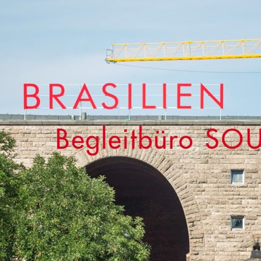 Der Stuttgarter Hauptbahnhof ist von Begleitbüro SOUP mit der Leuchtschrift BRASILIEN versehen worden. Begleitend hierzu ist im Projektraum OSTEND ein Ticketschalter und Informationsbüro mit der Destination BRASILIEN eingerichtet.